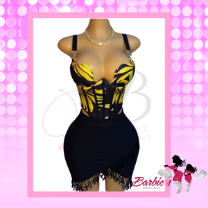 Barbie Fringe Wrap Skirt & Tropical Bustier Set