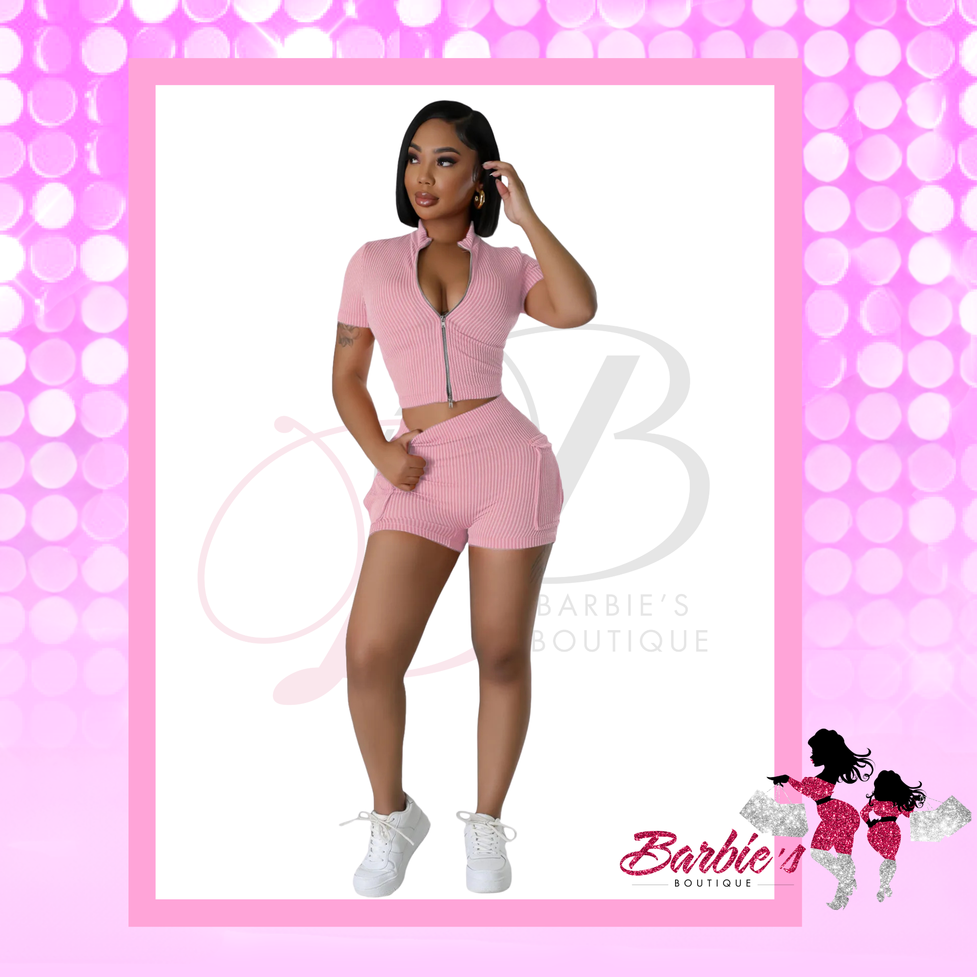 Barbie Zip Set – V-Neck Zip Crop Top & Shorts Outfit