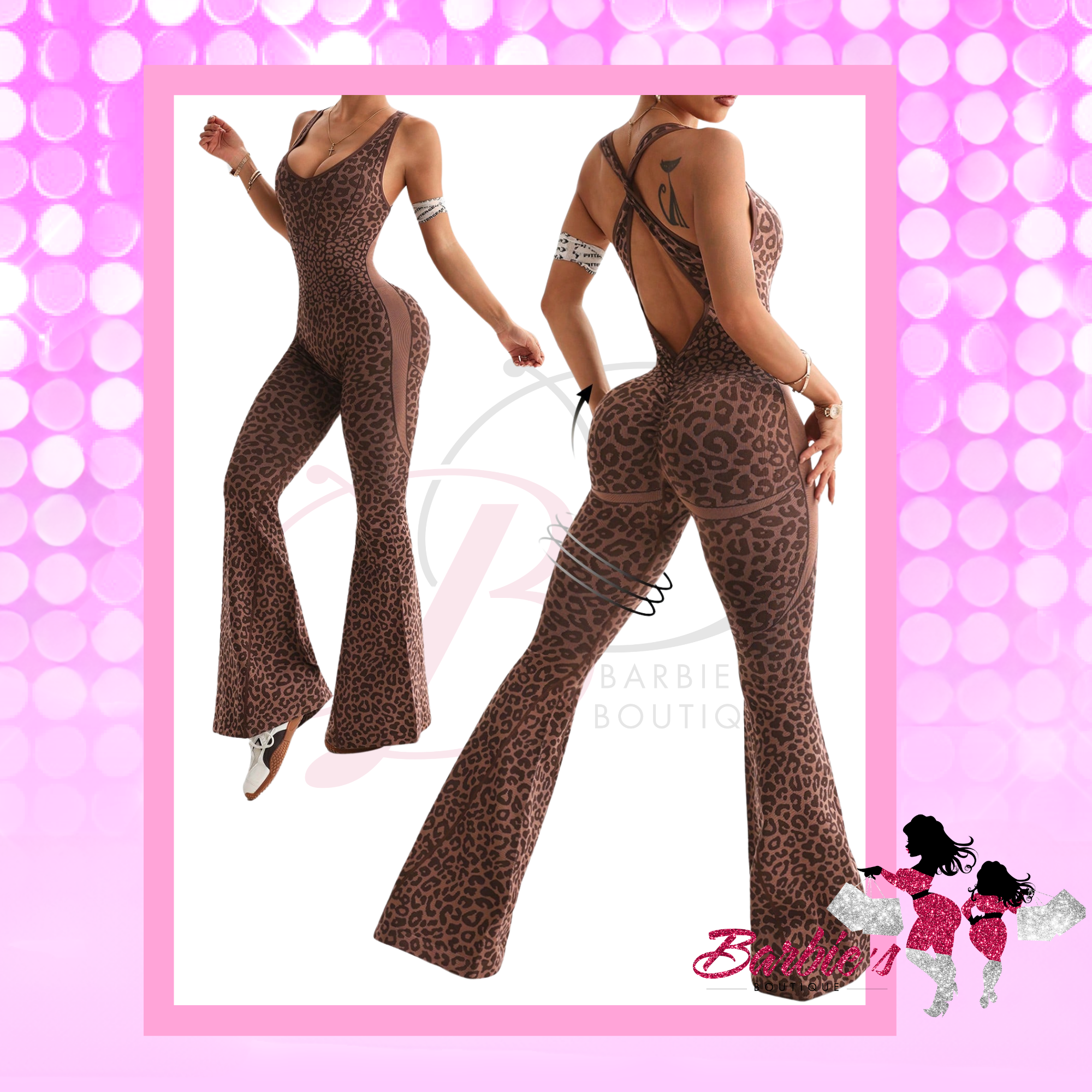 Barbie Sleeveless Romper – Leopard Print Deep V Cutout Jumpsuit